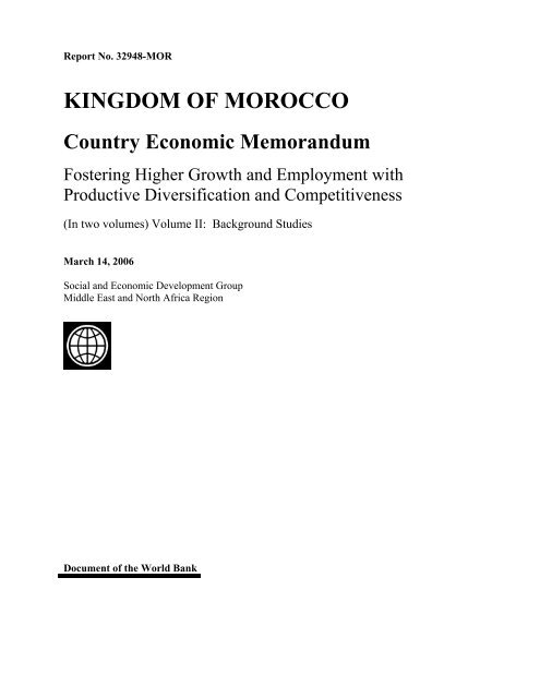 Kingdom Of Morocco Country Economic Memorandum Redeco